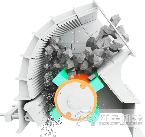 重錘破工作原理:重錘式破碎機是利用高速回轉錘子的沖擊作用進行破碎的。重錘式破碎機可分為單轉子重錘破碎機和雙轉子重錘破碎機。重錘式破碎機工作時,錘頭的高速運轉對給入的大塊物料進行打擊,并使其拋向機體內壁的承擊板上物料得到進一步沖擊破碎后,落到下面的篦條上,粒度合格的產物從篦條縫隙中排除,篦條上的物料繼續被錘頭打擊、擠壓、研磨,直至全部合格。