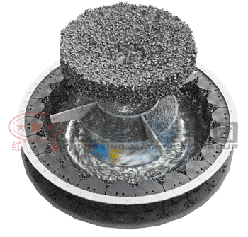 沖擊式破碎機在工作時,通過破碎腔內葉輪的高速旋轉對經由甩料盤甩出的物料進行充分的沖擊作用,受沖擊力的物料改變運動方向向破碎腔內壁分散,撞擊在反擊板上實現二度破碎,在反擊板的阻擋作用下物料斜向下運動,在向下部運動中又與不斷被高速旋轉的葉輪擊打出的物料產生相互撞擊,實現物料之間的“自擊”破碎,在葉輪高速旋轉形成的渦動腔內又與物料產生相互沖撞,逐漸破碎至需要粒度后由出料口排出。在沖擊式破碎機的整個破碎過程中,所破碎的物料不與破碎腔內的設備機械零部件產生直接碰撞接觸,而是通過物料直接的相互沖擊作用力傳遞實現細碎生產,因此,設備利用率高,物料受力充分,擊打程度上降低了設備消耗,生產過程節能高能,生產效率高。采用特別的自擊式原理進行不同質量物料的破碎,是沖擊式破碎機實現節能生產的關鍵。